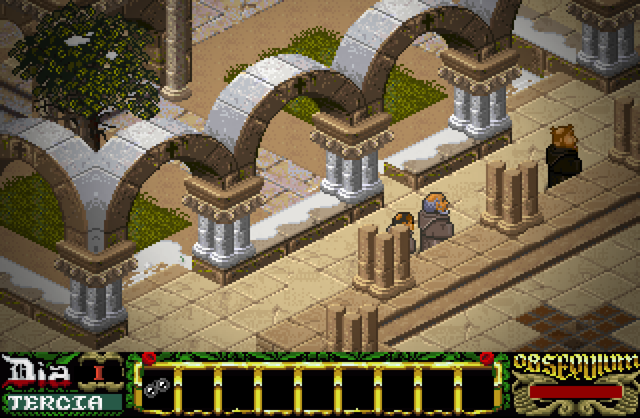 Y lejos de terminar, los remakes fueron mejorando. No puedo sino pararme en el impresionante La Abadía del Crimen Extensum que sin duda ha sido el mayor éxito de todos. Programado en Java mejora en todos los aspectos al original. Pausa, mapa, poder pasar algunas cinemáticas, control de personaje clásico o mejorado, nuevos objetos y personajes y sobre todo unos gráficos pixel art, deliciosamente trabajados. Una estética cuidadísima. Los autores: Manuel Pazos y Daniel Celemín. Dos nombres que sin duda se inscribieron en el libro de Adso.